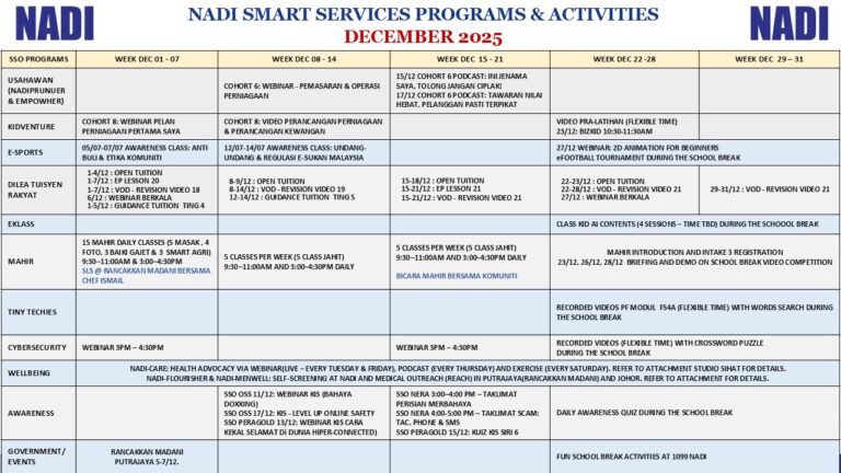 Takwim Program Perkhidmatan Pintar NADI Ogos 2025