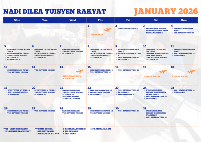 JADUAL OPEN TUTION NADI DILEA QUARTER 1/2026